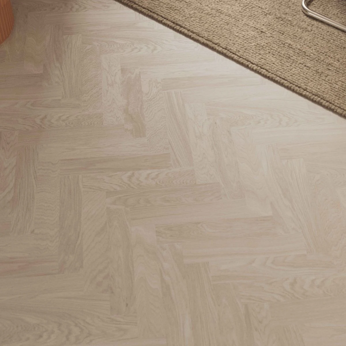 Kõvendatud kalasabaparkett BODEN, tamm, selekt, Powder White matt lakk Classic