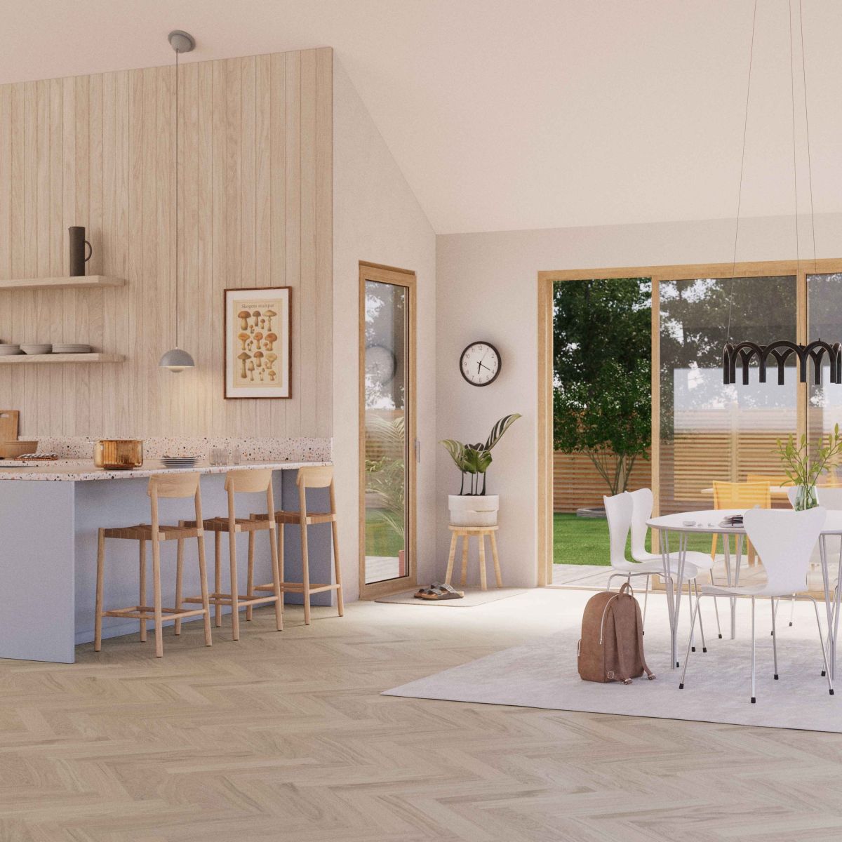 Kõvendatud kalasabaparkett BODEN, tamm, selekt, Powder White matt lakk Modern