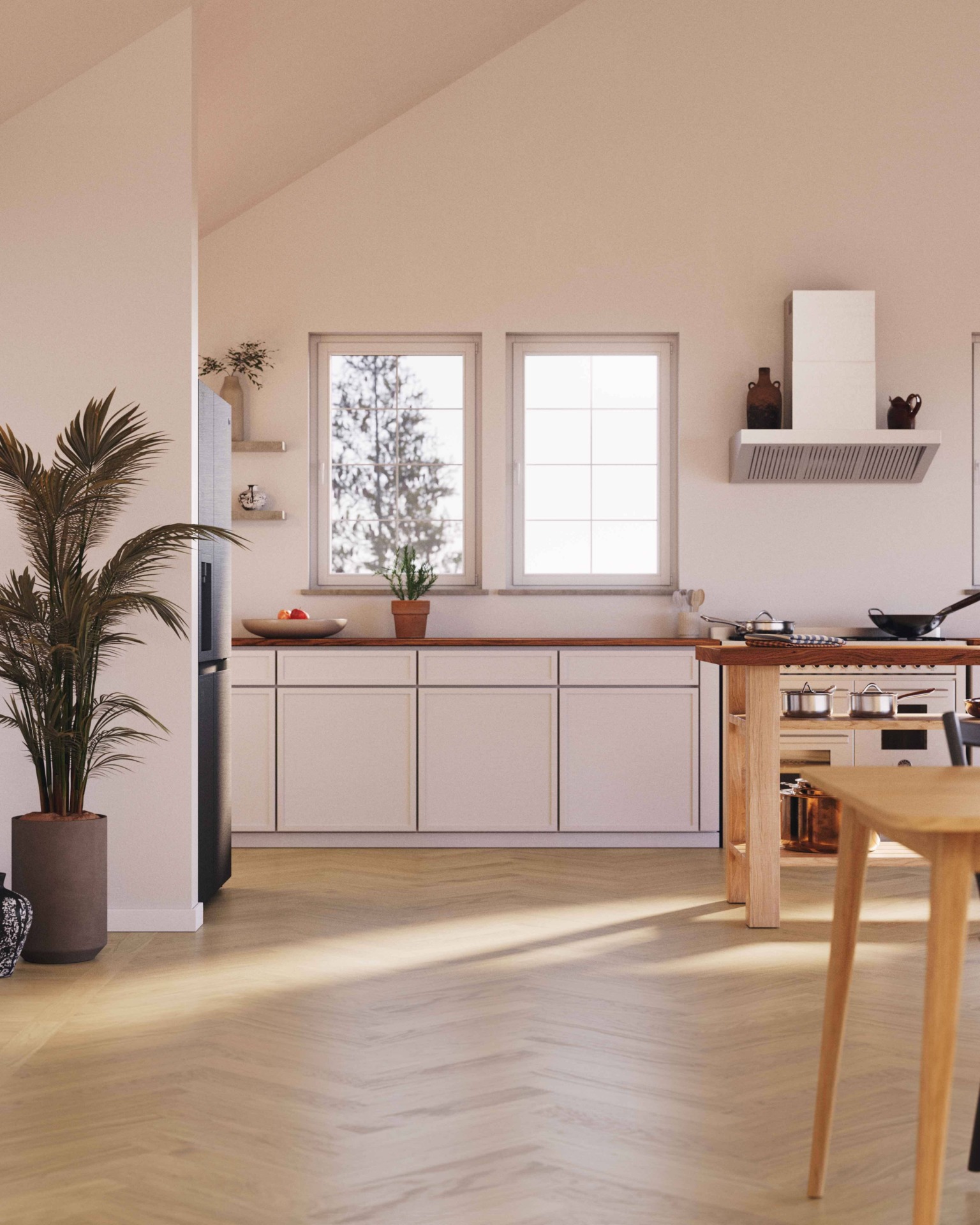 Kõvendatud kalasabaparkett SIGTUNA, tamm, selekt, Misty White matt lakk Modern